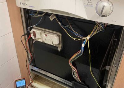En la parte de electrodomésticos, realizamos trabajos en lavadoras, secadoras, lavavajillas, neveras, vitrocerámicas, placas de inducción y hornos. Nuestro objetivo es alargar la vida útil de los aparatos y evitar sustituciones innecesarias siempre que la reparación sea viable.